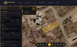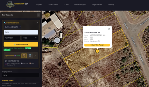 Review the details to confirm it’s the right parcel, then click the yellow Select This Parcel button. PV3D will immediately auto-fill all the property detail fields below — address, city, state, zip code, county, APN, latitude, longitude, and acreage — saving you from entering them manually.